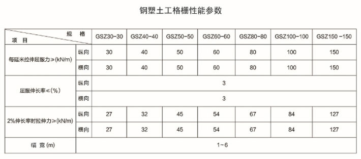 鋼塑復(fù)合土工格柵是用聚丙烯、聚氯乙烯等高分子聚合物經(jīng)熱塑或模壓而成的二維網(wǎng)格狀或具有一定高度的三維立體網(wǎng)格屏柵。由于塑料土工格柵在制造中聚合物的高分子會(huì)隨加熱延伸過(guò)程而重新排列定向,加強(qiáng)了分子鏈間的聯(lián)結(jié)力,達(dá)到了提高其強(qiáng)度的目的。其延伸率只有原板材的10%~15%。如果在土工格柵中加入炭黑等抗老化材料,可使其具有較好的耐酸、耐堿、耐腐蝕和抗老化等耐久性能。